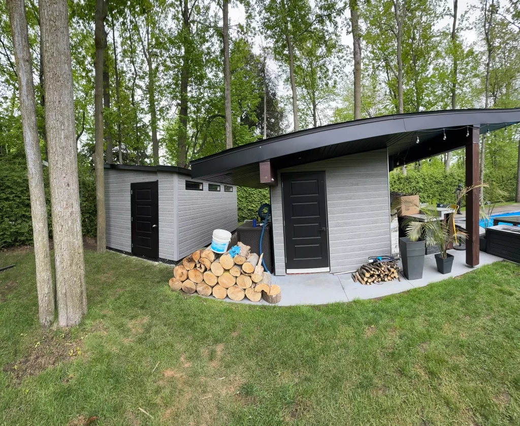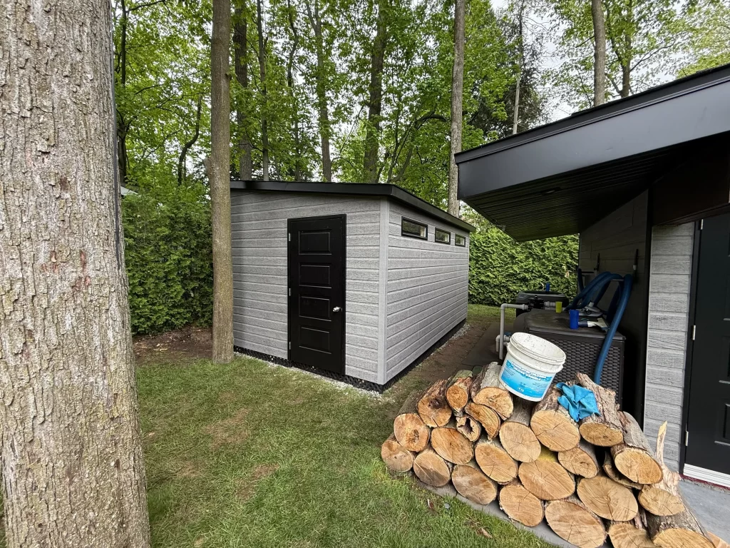 - Modèle construit en 2×4, plancher en contre-plaqué 5/8″, planches de toit 5/8″