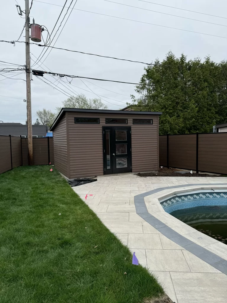 - Style tendance, lignes modernes, insertions de bois, portes et fenestration contemporaine